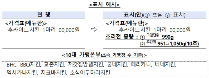 1. 치킨중량 의무 표시제, 12월 15일부터 시행